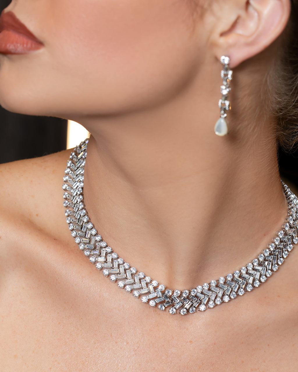 Finished with Zircon stones and a mother of pearl drop.