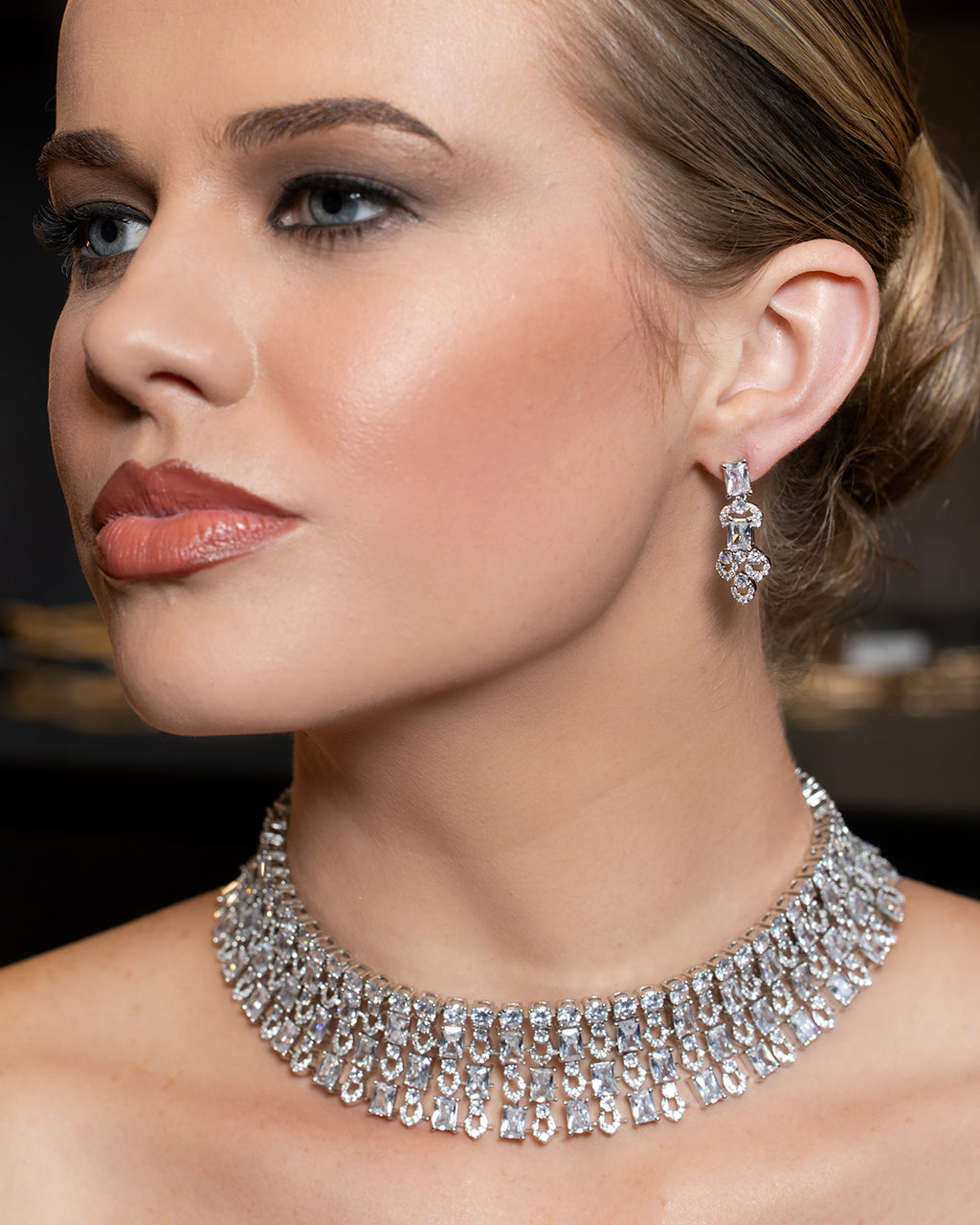 A sensational choker style necklace makes a glamorous statement while showing off sophication and style.