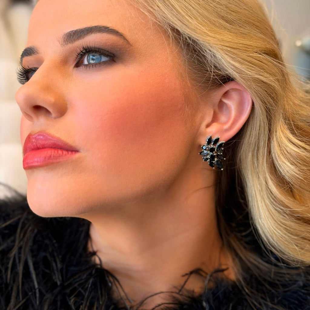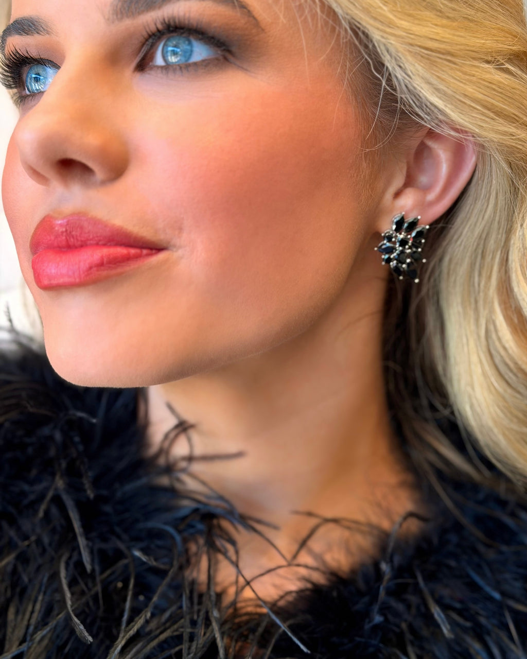 Statement Hollywood Glamour earrings for any special occasion, Stunning diamond cut CZ stones in Jet.