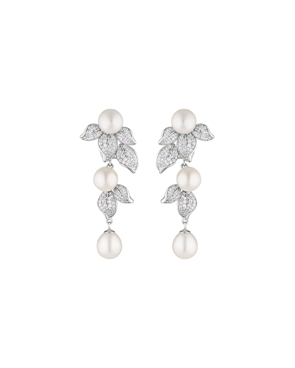 Made of Sterling Silver , Fresh water pearl and zircon with white gold plating. Hypoallergenic posts.
