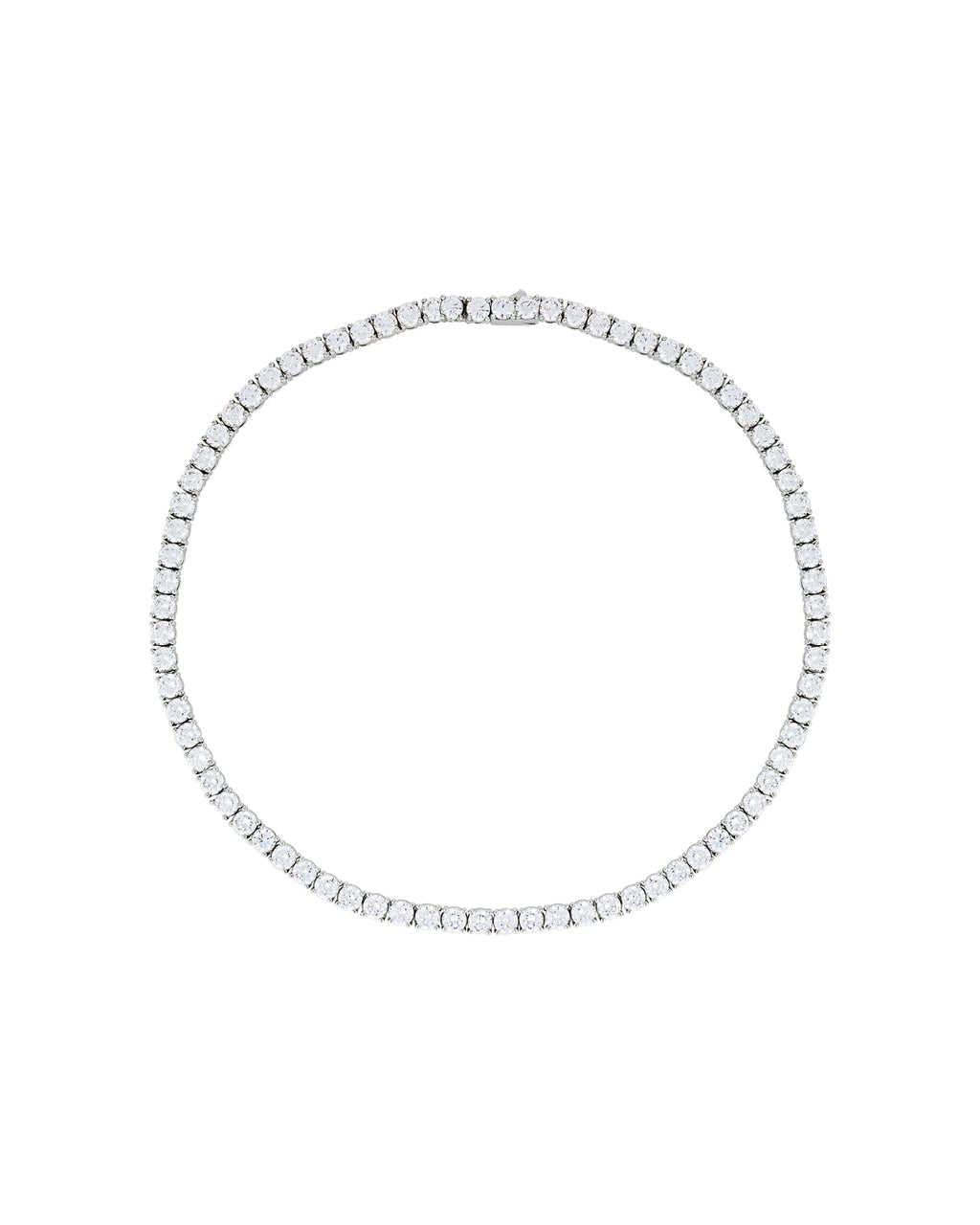 The Perfect Tennis necklace, shimmering like diamonds (nobody will know). This beautiful semi precious Sterling silver with protective white gold plating is an essential staple to your jewellery collection.