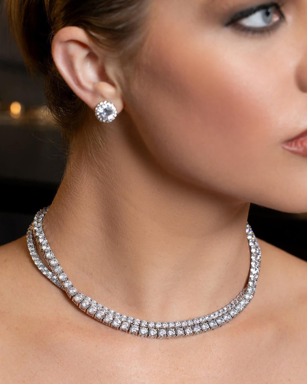 The perfect tennis necklace, shimmering like diamonds (nobody will know). This beautiful quality piece is an essential staple to your jewellery collection. Wear for any special occasion or layer with more chains to create a sophisticated style.