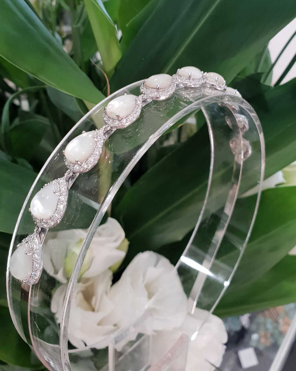 A wonderful addition to one of our best selling ranges the Miss Mae Alice consists of Mother of Pearl centers surrounded by diamond cut crystal. Plated to European Standards. Allergy Free. Rhodium plated. Australian Made.