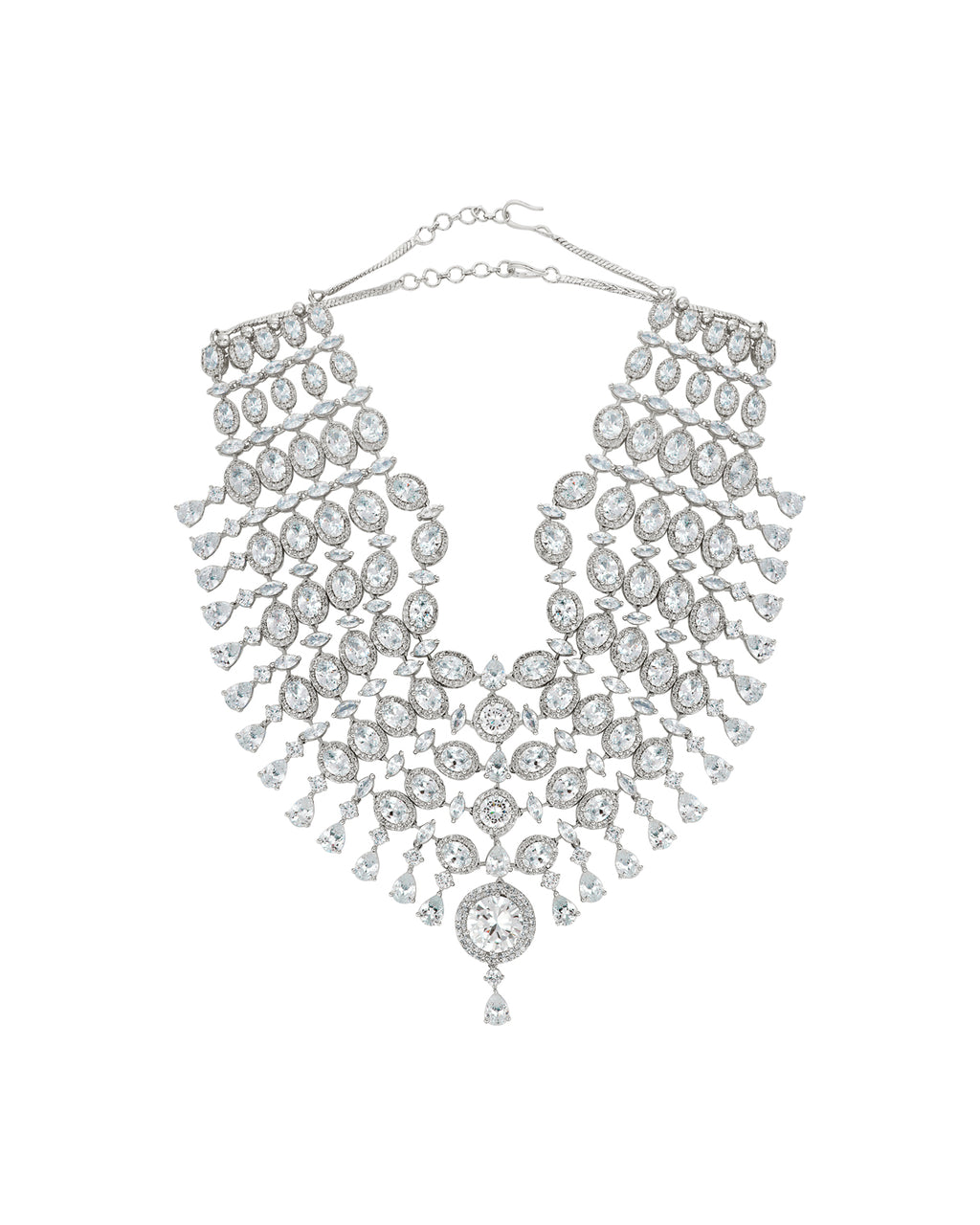 Crafted by our artisan jewellers in base metal brass than Plated in precious metal rhodium and handset with hundreds of diamond cut crystals, quality to last a lifetime.
